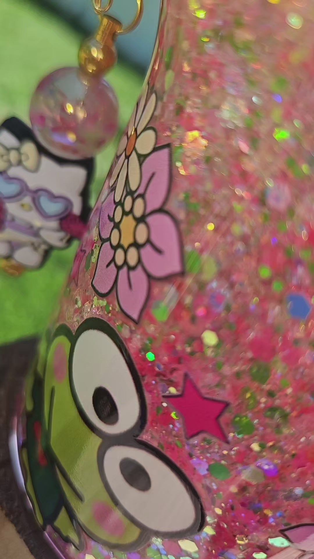 Glitter filled 40oz tumbler for cold beverages only. Not dishwasher safe